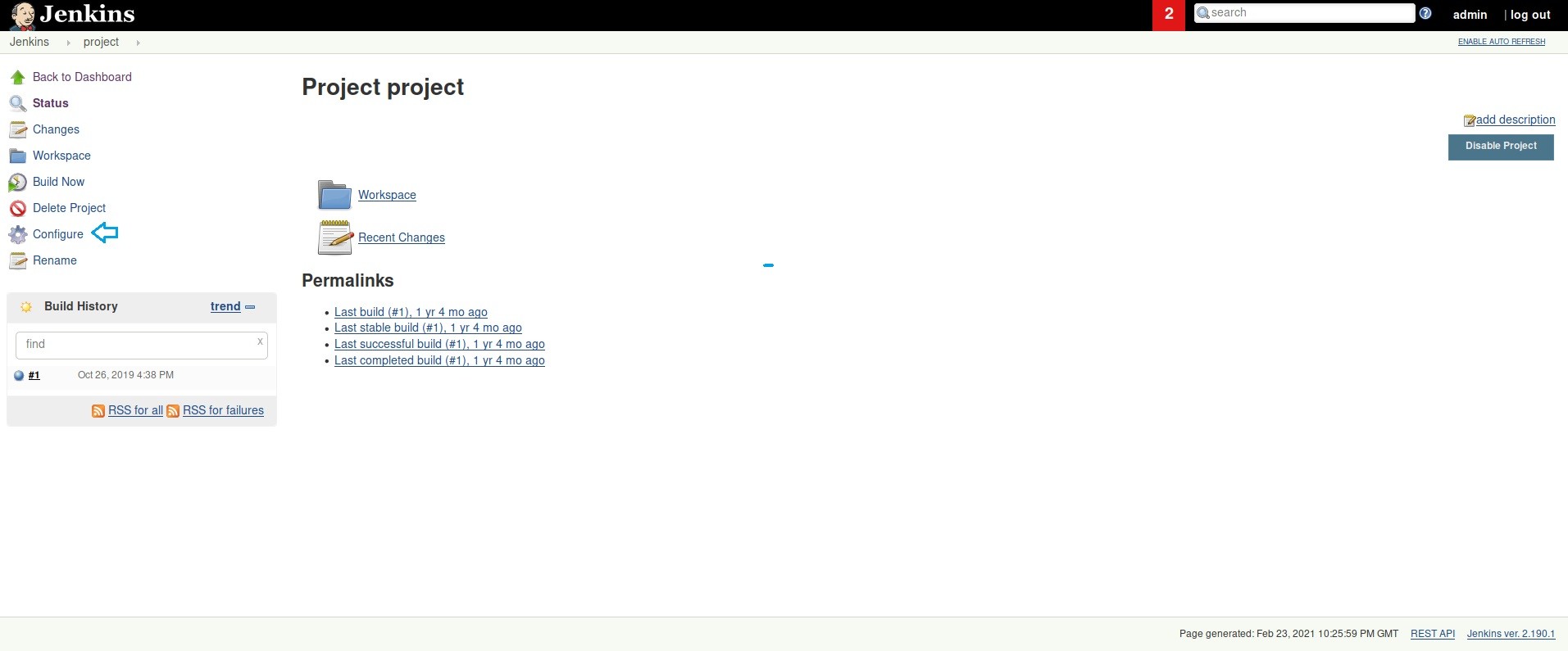 Admin sayfasında herhangi bir proje sayfası oluşturulup konfigüre sekmesine gidilir.