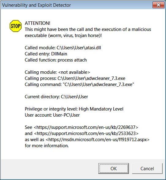 Bir program başladığında çalışması gereken çeşitli DLL’leri yükleyecektir. Geliştirici DLL dosyasının yolunu belirtmediyse program DLL dosyasını geçerli dizinden yüklemeye çalışır ve mevcut değilse, kullanıcının yolundaki diğer klasörleri kontrol eder. AdwCleaner başlatıldığında kötü amaçlı DLL dahil gerekli DLL’leri yüklemeye çalışır. AdwCleaner, yönetici ayrıcalıklarıyla çalıştığından bu kötü niyetli DLL’nin de yüksek ayrıcalıklarla çalıştırılacağı ve kötü amaçlı komutları yönetici olarak çalıştırabileceği anlamına gelir.