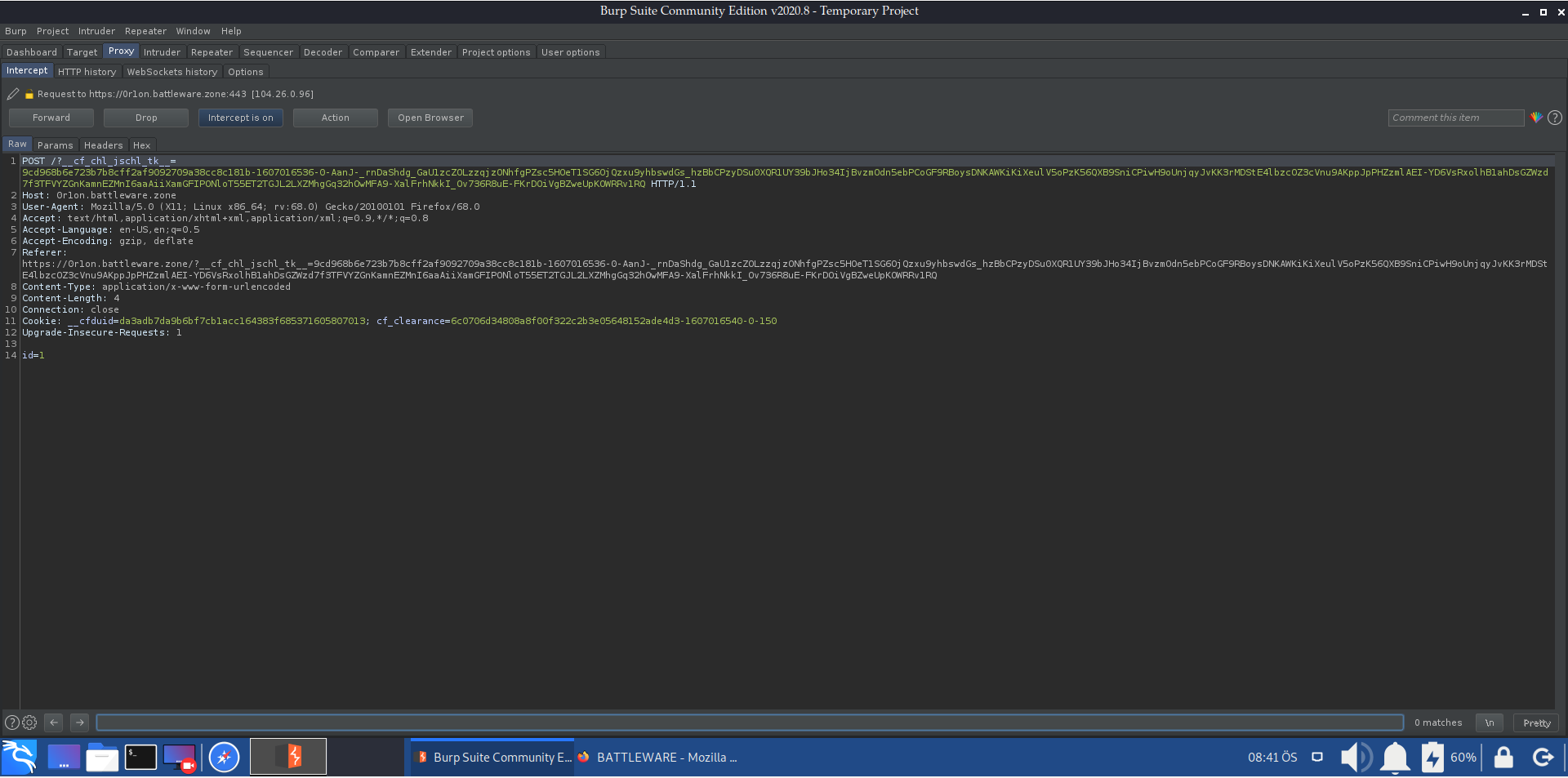 Burada sayfa kaynağını kontrol ettiğimiz zaman bir “id” bilgisi olduğunu fark ettik. Burp Suit ile araya girdik.