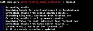 Fakat biz özellikle o domaine bağlı tüm e postaları listelemek istediğimiz için Metasploit Framework adını verdiğimiz “msfconsole” aracından faydalanacağız.