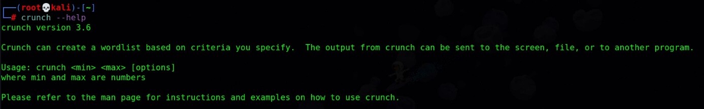 Bunun gibi birçok farklı araç ile isteğinize göre wordlist oluşturabilirsiniz ama günümüzde en yaygın kullanılan araçlardan bir tanesi crunch olarak bilinmektedir.