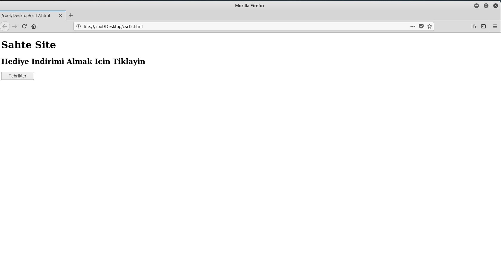 Örnek verecek olursak bir kullanıcının banka hesabını incelemekte olan birisinin aynı zamanda yan sekmede maillerini kontrol ettiğini düşünelim. Hedef kişi, saldırgan tarafından gönderilen zararlı bir bağlantıya tıkladığı zaman hedef kullanıcı mail sekmesinde olmasına rağmen saldırgan, hedefin yan sekmesinde açık bulunan banka sayfasına erişebilir. Çünkü hedefin banka sayfasındaki oturumu  aktif olduğu için saldırganın ihtiyacı olan bilgiler tarayıcıda mevcut durumdadır ya da saldırgan hedefin CSRF açığı bulunan bir hesabın kullanıcı şifresini değişmek için link gönderebilir. Şimdi DVWA üzerinde uygulamalı olarak anlatacağım.