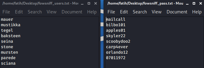 Saldırıya başlamadan önce bulduğumuz kullanıcı adlarını ve parolaları saldırı aşamasında wordlist olarak kullanabilmek için masaüstüne kaydettik.