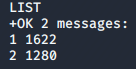 LIST komutu ile mesajları listeledik ve karşımıza 2 mesaj çıktı.