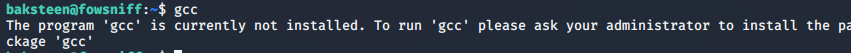 gcc komutuyla yüklü olup olmadığını kontrol ettik ve yüklü olmadığını gördük.