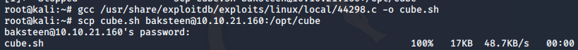 gcc /usr/share/exploitdb/exploits/Linux/local/44298.c -o cube.sh