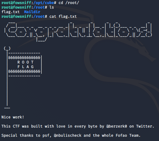 Son olarak /root dizinine gidip bayrağımızı kapıyoruz. Bir sonraki CTF’te görüşmek üzere 🙂