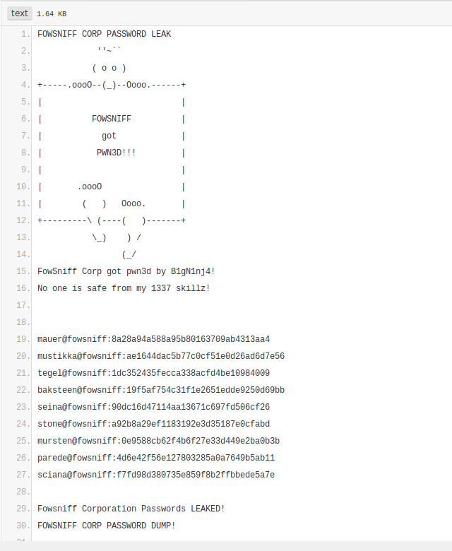 Hesapta sabitlenmiş bir pastebin linki bulduk ve açtığımızda şirketin bazı parolalarının ifşa edildiği bir text ile karşılaştık.
