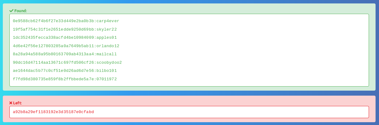 ve hashcracker ile çözülmüş hallerini bulduk.