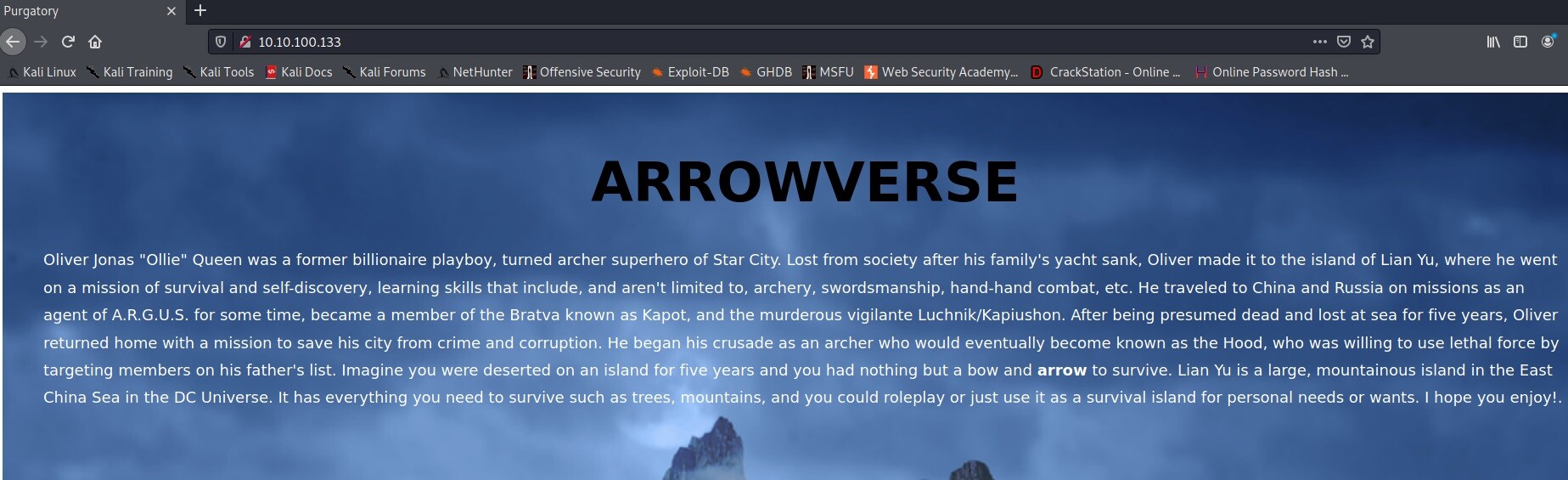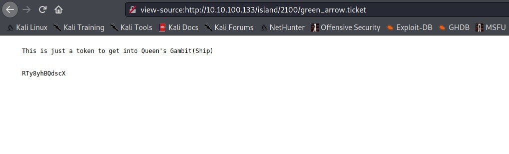 10.10.100.133/island/2100/green_arrow.ticket sayfasına gidildiğinde “RTy8yhBQdscX” hash’i bulunuyor.