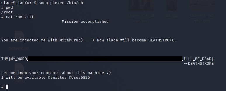 sudo pkexec /bin/sh ile yetki yükseltildikten sonra root flag’ı da bulunur.