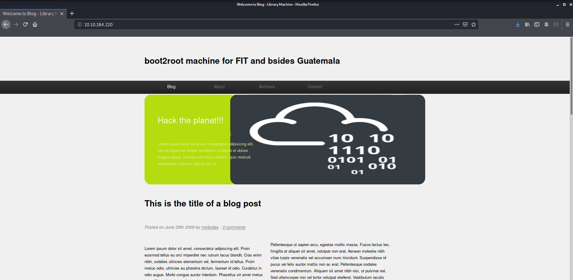 2 açık port bulduk. 80 portunda Apache web sunucusunun çalıştığını gördük ve adresi tarayıcıya yazdığımızda karşımıza bir blog sayfası çıktı