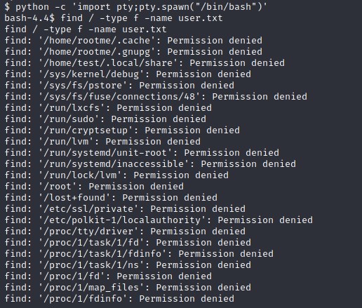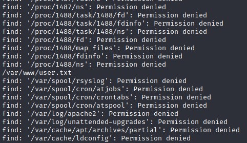find / -type f -name user.txt ile flag dosyası aratılır.