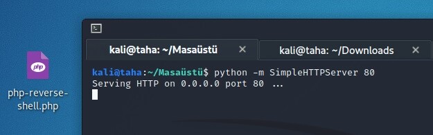 python -m SimpleHTTPServer 80 ile yerel makinede http serveri başlatılır.