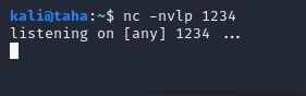 nc -nvlp 1234 portunda dinleme başlatılır.