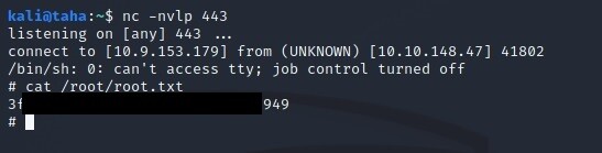 saldırı parametresi kullanıldıktan kısa süre bir süre sonra netcat bağlantısı başarı ile sağlanıyor.