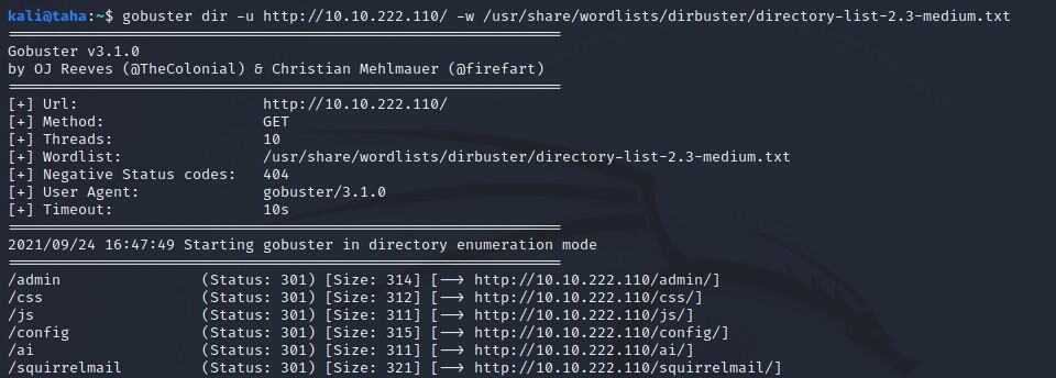 gobuster dir -u <ip> -w <wordlist> ile sayfanın sahip olduğu diğer dizinler aratıldığında görseldeki dizinler bulunmuştur.