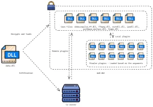 DEEPDATA’nın temel bileşeni olan “data.dll”, 12 farklı eklentiyi yükleyip çalıştırmak için bir düzenleyici modülü (frame.dll) kullanıyor. Bu eklentiler arasında, daha önce belgelenmemiş bir FortiClient DLL’i yer alıyor. Bu eklenti, Fortinet’in Windows için VPN istemcisindeki sıfır gün açığını kullanarak kullanıcı kimlik bilgilerini cihazın belleğinden çıkarıyor.