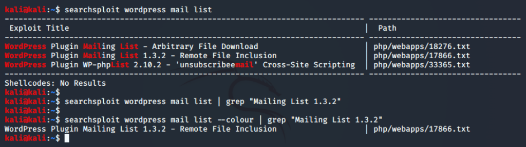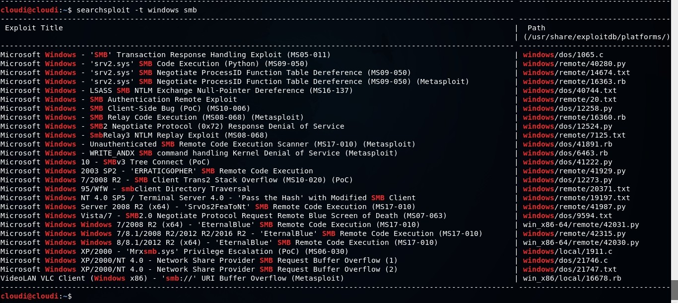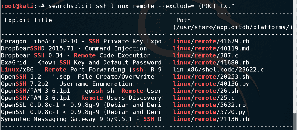 Searchsploit aracına ait bazı ekran görüntüleri: