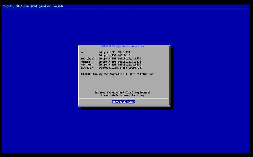 WordPress sanal makinemiz 192.168.8.151 IP adresini aldı.