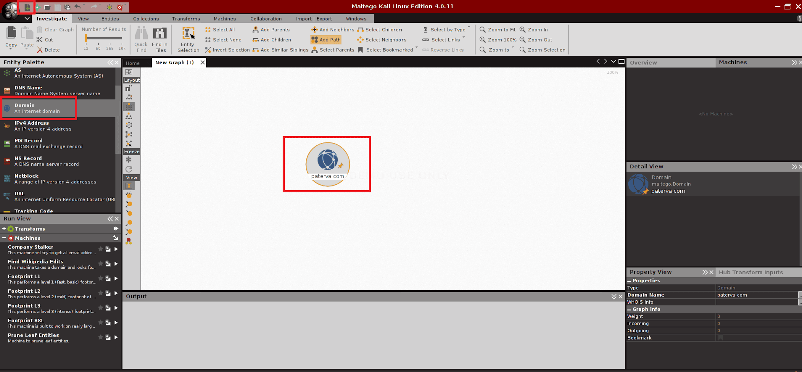 Maltego’yu Applications/Information Gathering menüsünden ulaşarak çalıştırabilirsiniz.