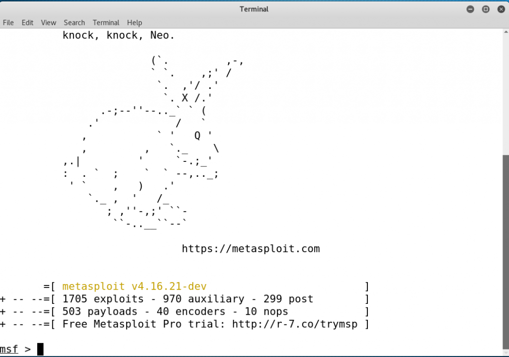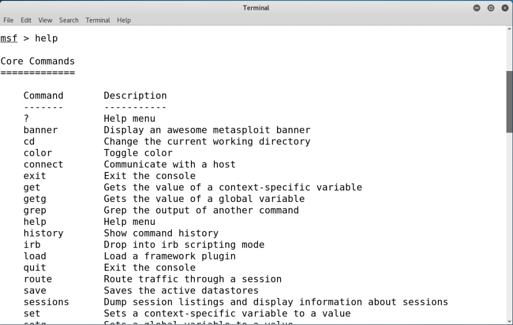 Metasploit Framework’ü başlattıktan sonra karşımıza gelen konsolda komutlar girerek istediklerimizi gerçekleştireceğiz. Bunun için bu konsolu biraz tanıyalım.