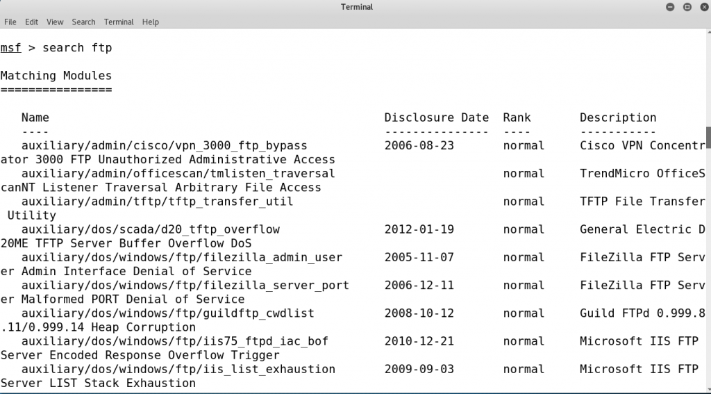 Auxiliary: Sızma işleminden önce sistem hakkında bilgi toplamak için kullanılan yardımcı modüllerdir.