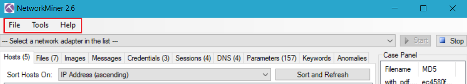 • About NetworkMiner kısmında ise araçla ilgili bilgi alınabilir.