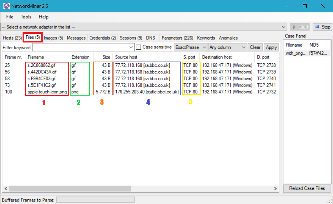 Files sekmesinde NetworkMiner tarafından ayıklanmış(extract) dosyaları içerir.