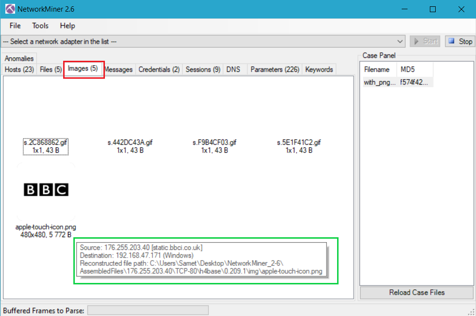NetworkMiner canlı analize başlandığında veya bir pcap dosyası açılır açılmaz HTTP, SMB, FTP ve TFTP protokollerinden dosyaları otomatik olarak indirir.