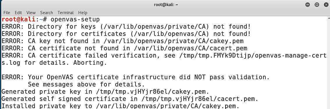 Şimdi de openvas-setup komutunu yazarak OpenVAS kurulumunu başlatalım
