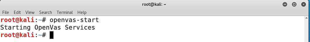 Şimdi de openvas-start komutu ile OpenVAS servisini başlatalım.