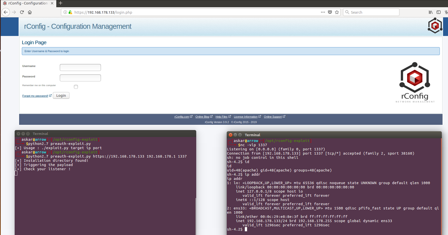 Bu arada bu araştırmalardan bağımsız çalışan başka bir güvenlik araştırmacısı kusurları analiz etti ve ikinci RCE güvenlik açığı ile 3.6.0 sürümünden önce rConfig sürümlerinde kimlik doğrulaması gerektirmeden de yararlanılabileceğini keşfetti.