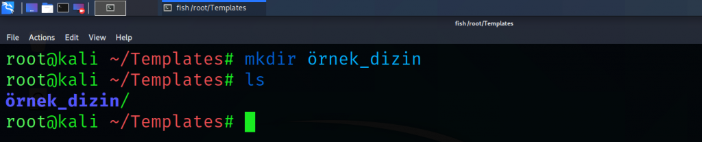 4) mkdir (make directory): Yeni bir dizin oluşturur. Temel kullanımı “mkdir <yeni_dizin_ismi> “ şeklindedir.