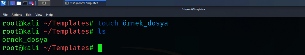 5) touch : Yeni bir dosya oluşturmak istenildiğinde touch komutu kullanılır. Temel kullanımı “touch <yeni_dosya>” şeklindedir. Aynı komutla tek seferde birden fazla dosya oluşturmak da mümkündür.