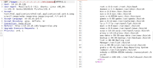 Kaynak kodda gördüğüm gibi relax.php dosyası isteğini burp suite ile de yakaladım ve bu isteği repeater’a gönderiyorum.LFI olup olmadığını test etmek için “../../../../../../../../etc/passwd” payloadı ile passwd dosyasını okuyup okuyamadığımı test ediyorum.