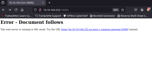 2 tane açık port görüyorum. Kullanıcı adı ve şifre ile ilgili bir bilgi olmadığı için 22 numaralı porttan ilerleyemem. Bu yüzden 10000 numaralı portu ziyaret ediyorum.