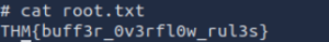 Ve flagi THM{buff3r_0v3rfl0w_rul3s} olarak görüyoruz ve odayı tamamlamış oluyoruz.