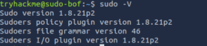 Komutu çalıştırdığımızda bağlantı kurduğumuzu görüyoruz ve “sudo -V” komutu ile sudonun versiyonunu öğreniyoruz.