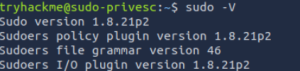 Komutu çalıştırdığımızda bağlantı kurduğumuzu görüyoruz ve “sudo -V” komutu ile sudonun versiyonunu öğreniyoruz.