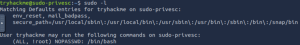 “sudo -l” komutunu çalıştırıyoruz ve /bin/bash komutunu çalıştırabildiğimizi görüyoruz.Bu aynı zamanda 1. sorumuzun cevabı oluyor. Şimdi versiyonun 1.8.21 olduğunu biliyoruz ve /bin/bash komutunu çalıştırabildiğimizi biliyoruz.Sudo’nun 1.8.28 ve önceki sürümlerinde kullanıcıların root yetkisiyle komut çalıştırmasını sağlayan bir açık olan CVE-2019-14287 aklıma geliyor.”sudo -u#-1 /bin/bash” komutu ile mevcut kullanıcı adına sahip olmayan sistem kullanıcılarından birine ait bir bash kabuğu başlatır.