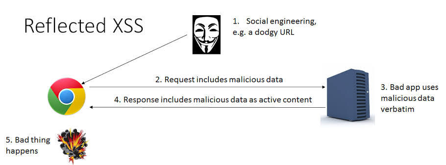 Reflected XSS kullanıcının girilmesi beklenen parametre yerine Javascript, html kodu girerek bunu ekrana yansıtması ile tespit edilebilen XSS çeşitidir.